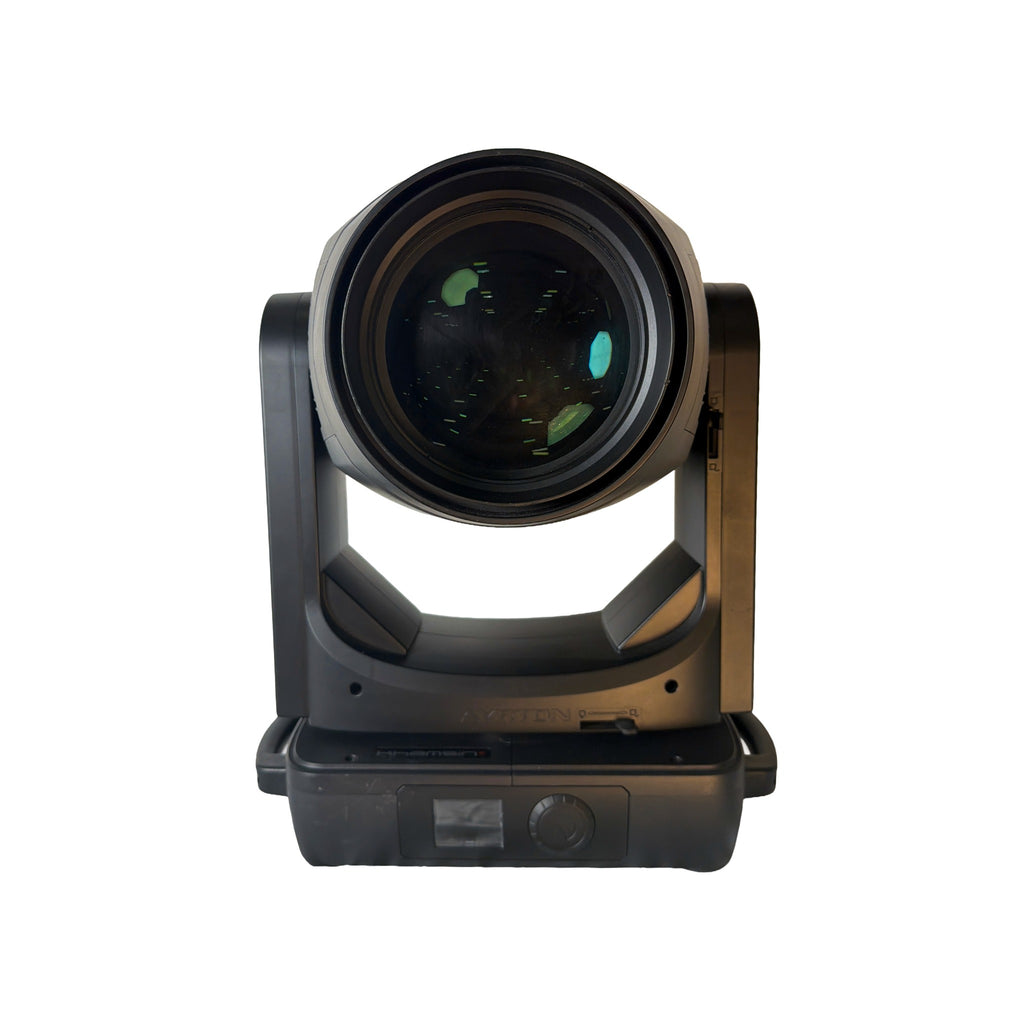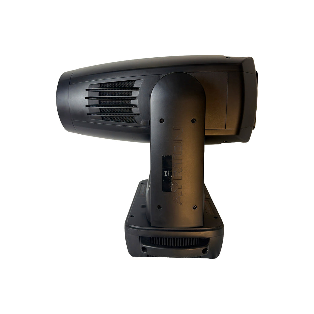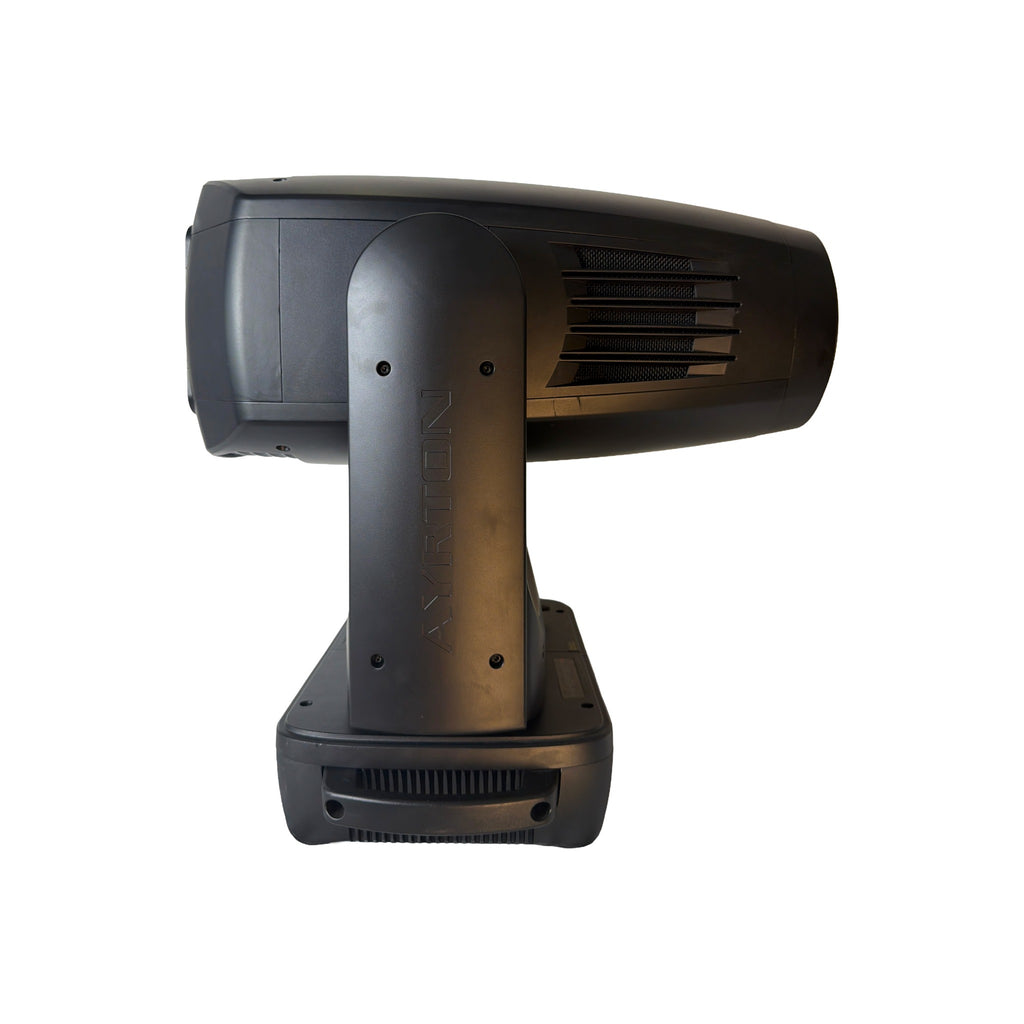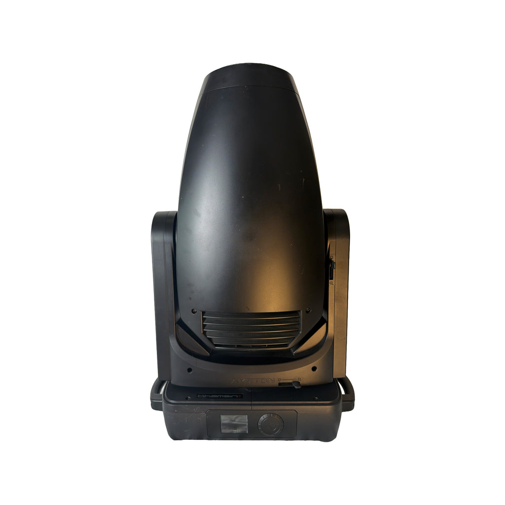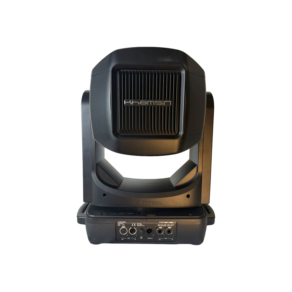 The Ayrton Khamsin S is a high-output IP20 LED profile in a compact Ghibli form, delivering 40 000 lm at 7 000 K via a 750 W white LED module. Its redesigned cast-aluminium frame and efficient liquid cooling enable 8:1 zoom (7°–58°), CMY+CTO mixing, dynamic framing, dual gobo wheels, animation, iris, frost, and prisms for stadium and arena productions.
